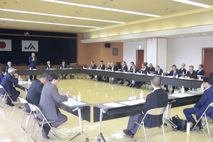 福井県農政連選挙対策委員会が10月11日(金)農業会館9階大ホールで開催されました。農政連の16支部の支部長他、県農協五連の役員又JA福井県、JA越前たけふの組合長、県農協青壮年部協議会の役員等総勢37名にて開催されました。
